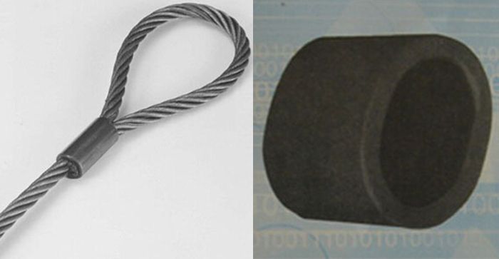 ![]() | ?應(yīng)用于折回鋼絲繩 ?特殊處理的鋼材 ?具有良好的低溫韌性 ?當(dāng)對其擠壓時,具有良好的抗開裂性(等于或 超過不銹鋼套) ?具有良好的擠壓性能 ?產(chǎn)品表面可以打印標(biāo)識 |